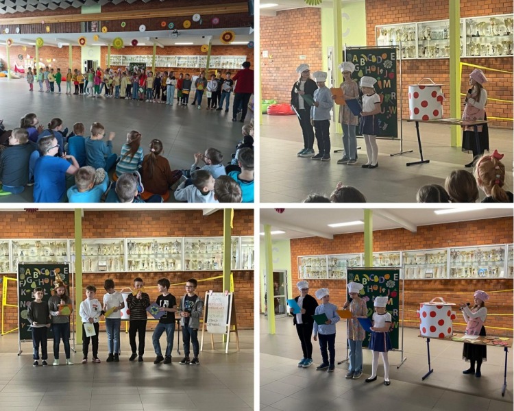 W czwartek 18.04. dzieci ze świetlicy z klas I, II, III wystąpiły przed klasami 1 i 2 z przedstawieniem promującym zdrowe odżywianie pt. "Alfabet warzywno- owocowy". Klasy 3 przygotowały scenki o zdrowiu a klasy 1 i 2 zaśpiewały piosenki i zatańczyły. Wszyscy wspaniale się spisali.