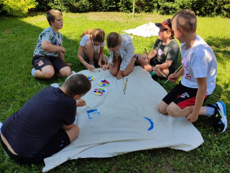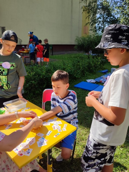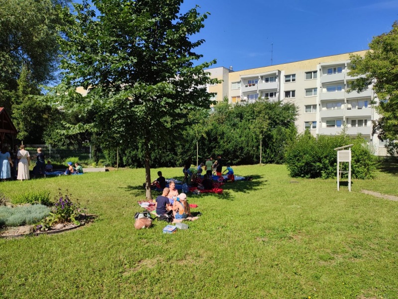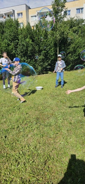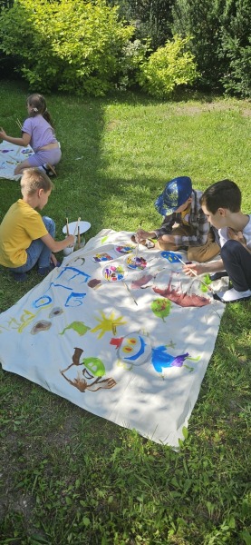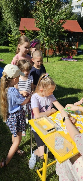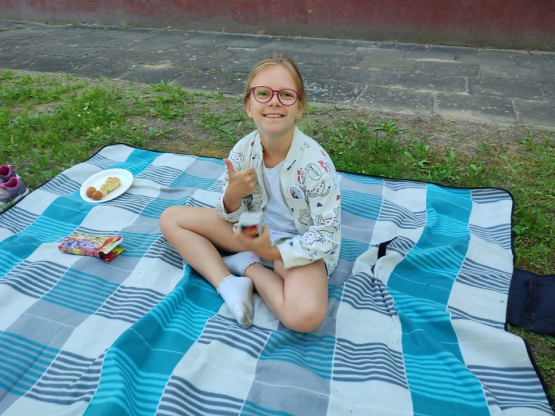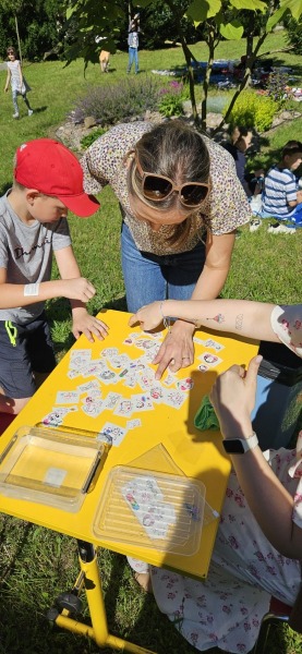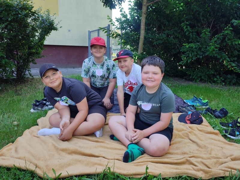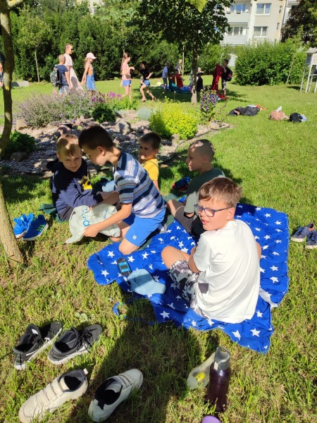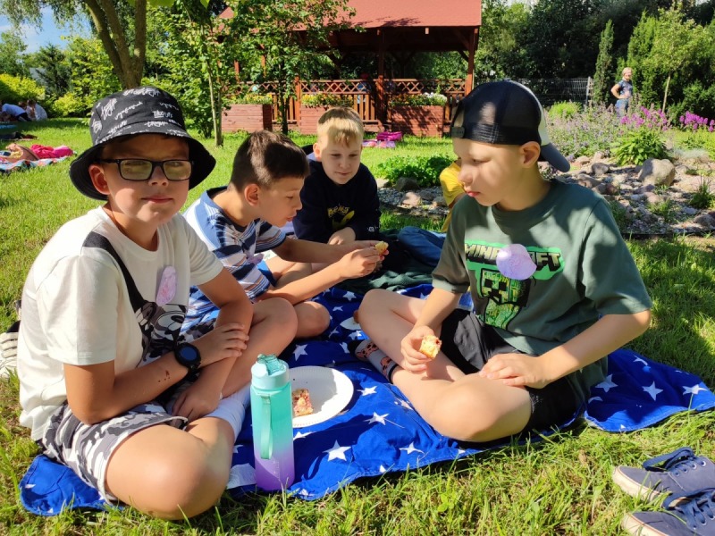 Szkolny ogród stał się miejscem w którym uczniowie klasa integracyjnych (1c, 2c, 3c) mieli okazję spędzić miło czas i zacieśnić swoje relacje. W czasie pikniku dzieci mogły pokonać tor sprawnościowy oraz wykonać własne pudełeczko na popcorn, a następnie napełnić je nim. Nie zabrakło kącika gier planszowych i aktywności artystycznej- wspólnego malowania płótna. Dodatkowo dzieci mogły zrobić sobie tymczasowy tatuaż lub ogromną bańkę mydlaną.