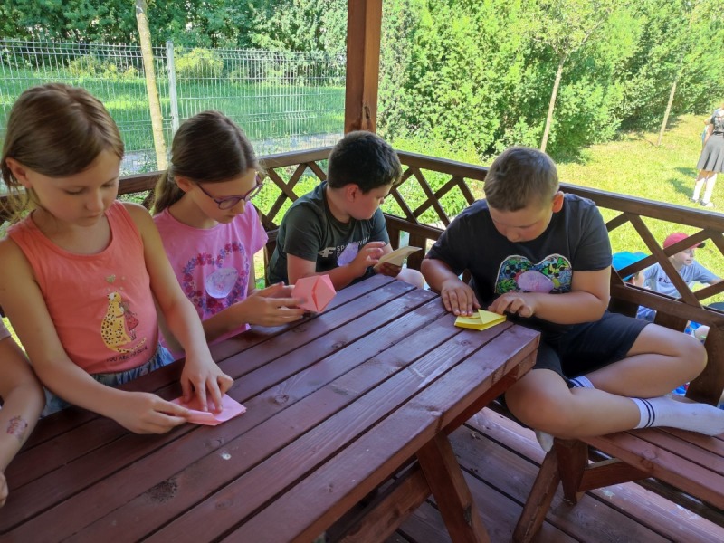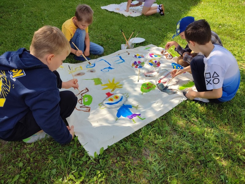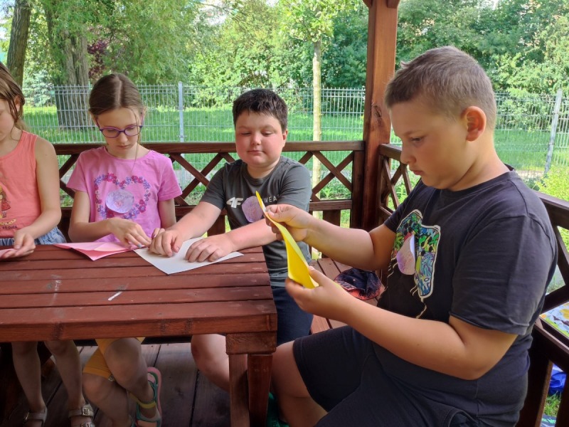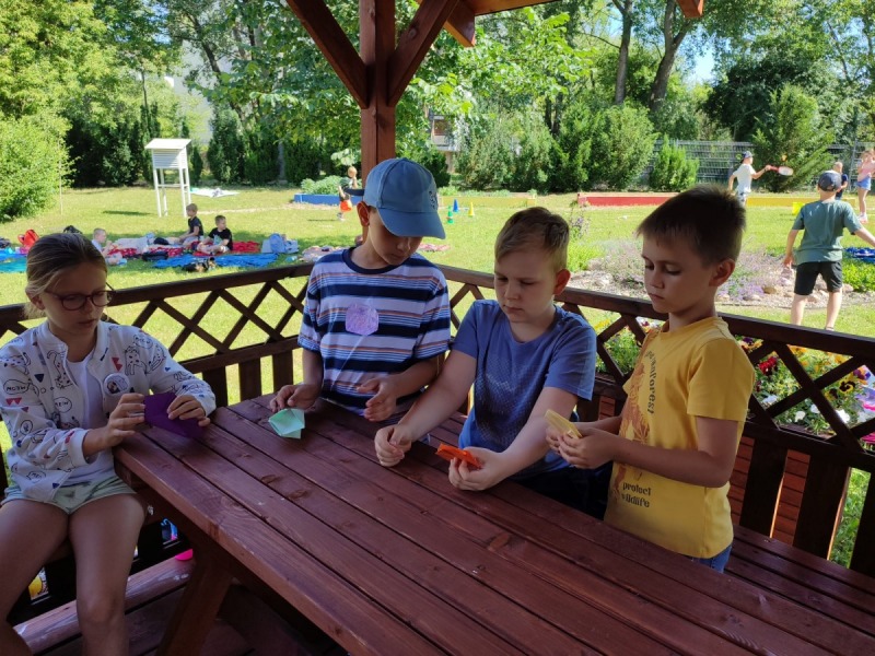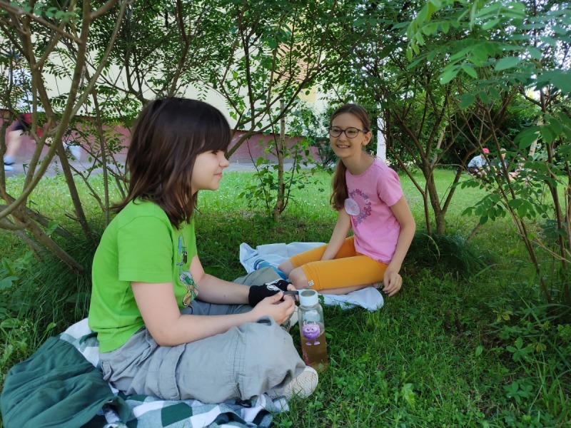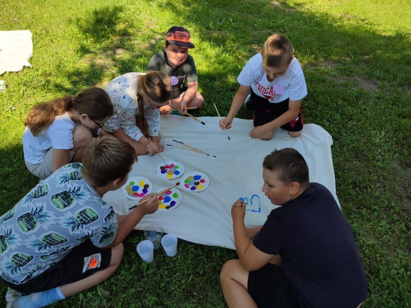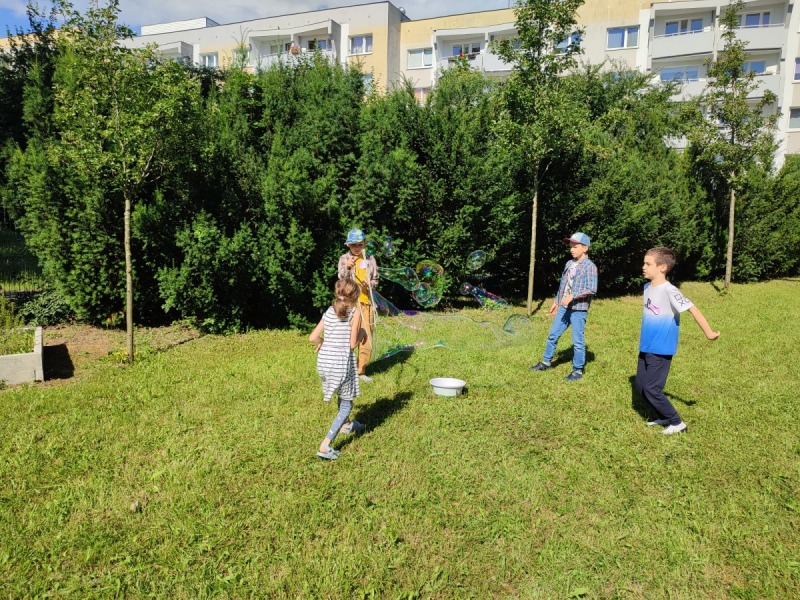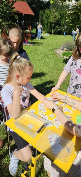 Szkolny ogród stał się miejscem w którym uczniowie klasa integracyjnych (1c, 2c, 3c) mieli okazję spędzić miło czas i zacieśnić swoje relacje. W czasie pikniku dzieci mogły pokonać tor sprawnościowy oraz wykonać własne pudełeczko na popcorn, a następnie napełnić je nim. Nie zabrakło kącika gier planszowych i aktywności artystycznej- wspólnego malowania płótna. Dodatkowo dzieci mogły zrobić sobie tymczasowy tatuaż lub ogromną bańkę mydlaną.