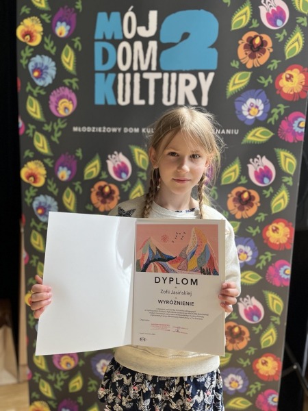 Z przyjemnością informujemy, że Zosia Jasińska, uczennica klasy 4c, została jedną z nagrodzonych w Ogólnopolskim Konkursie Rękodzieła Artystycznego Włóczką Malowane. Finał konkursu odbył się 14 czerwca w Młodzieżowym Domu Kultury nr 2 w Poznaniu. W czasie uroczystości zaprezentowano wyróżnione prace oraz zostały wręczone nagrody i dyplomy uczestnikom konkursu. Odbyły się również warsztaty związane z tematyką konkursu - każdy uczestnik wyszedł z własną pracą o charakterze użytkowym.