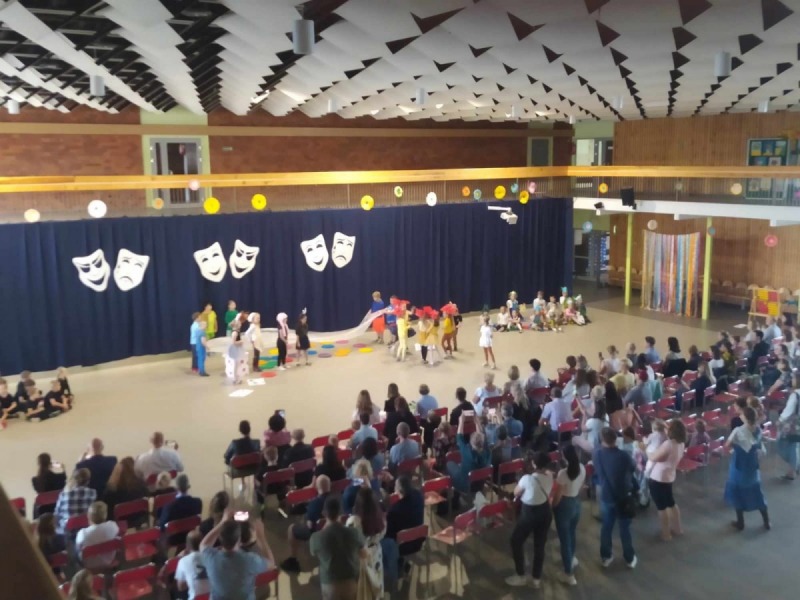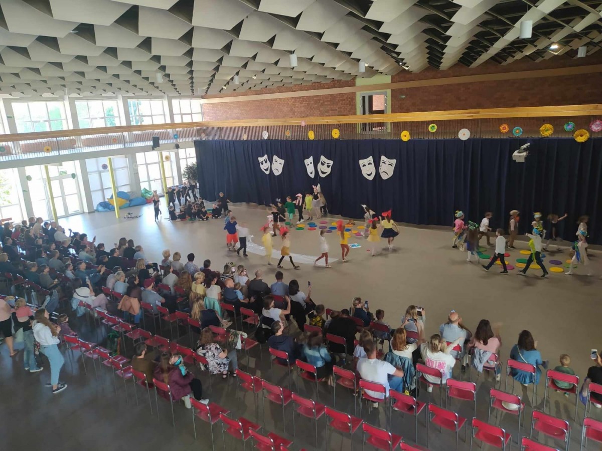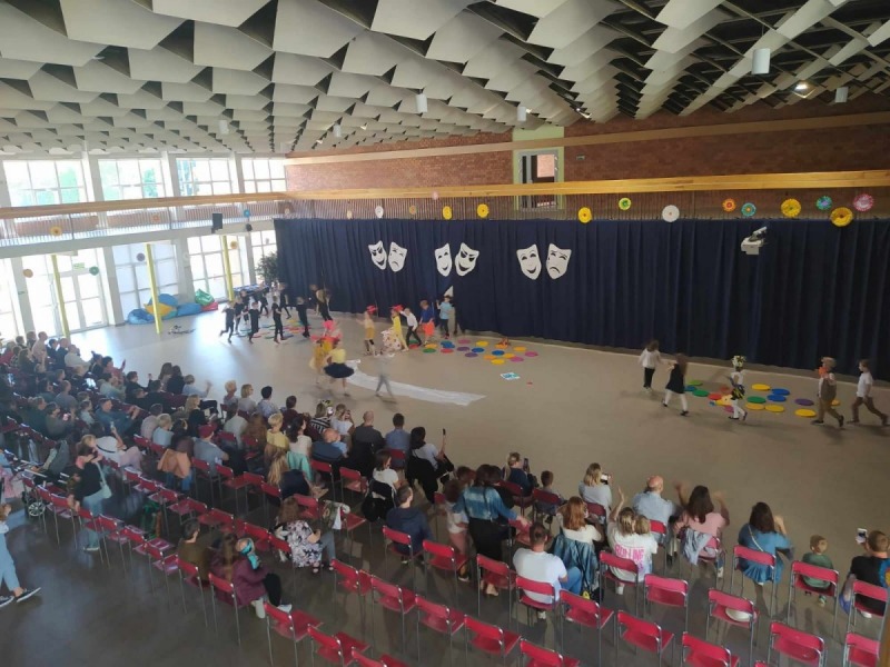 12 czerwca Szóstka wypełniła się gwarem dziecięcej sztuki, za sprawą wspaniałego wydarzenia jakim było Małe Forum Teatralne. Pierwszoklasiści zaprezentowali wybrane wiersze Jana Brzechwy w muzycznej odsłonie ożywiając je tańcem oraz piękną grą aktorską. Scena zapełniła się zwierzakami – cudakami i kłamczuszkami. Pojawiła się także muzyka filmowa i jej taneczna interpretacja (indiańska, a nawet szpiegowska). Aktorzy czuli się na scenie znakomicie. Widzowie w postaci rodziców, rodzeństwa, babć, dziadków, cioć, wujków… dopisali i dobrze się bawili, nagradzając małych artystów gromkimi brawami. Wychowawczynie rozpierała duma. Po występach można było zrobić pamiątkowe zdjęcie w wesołej fotobudce. Całość wydarzenia umilił kącik ze słodyczami i lemoniadą. Dziękujemy za tak liczny udział i wspólnie spędzony czas. Zabierzemy tę pozytywną energię w wakacyjnym pakiecie.
