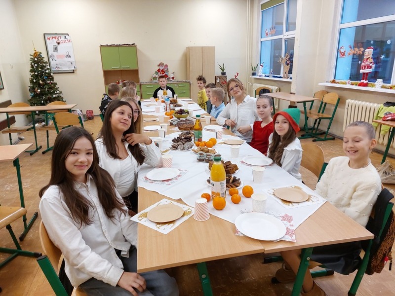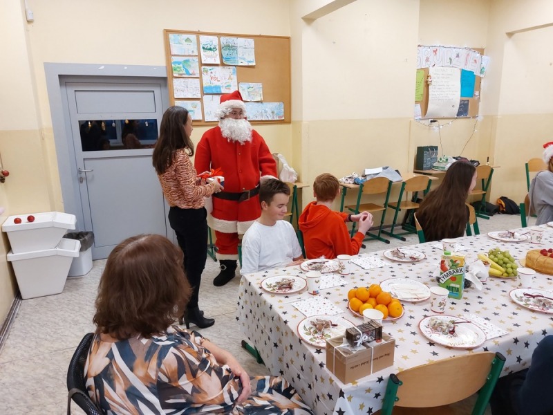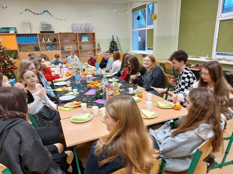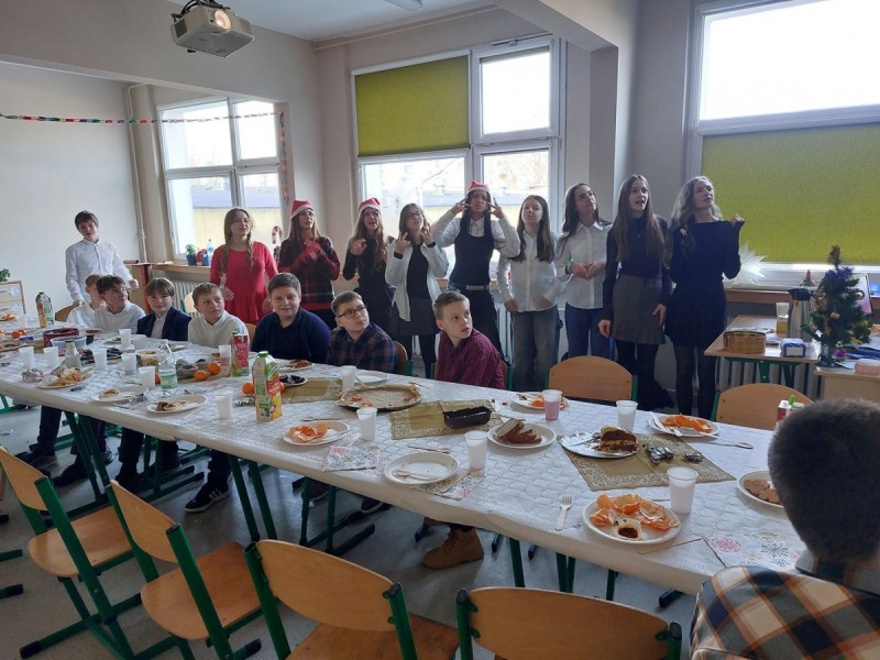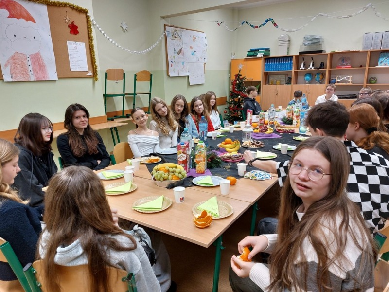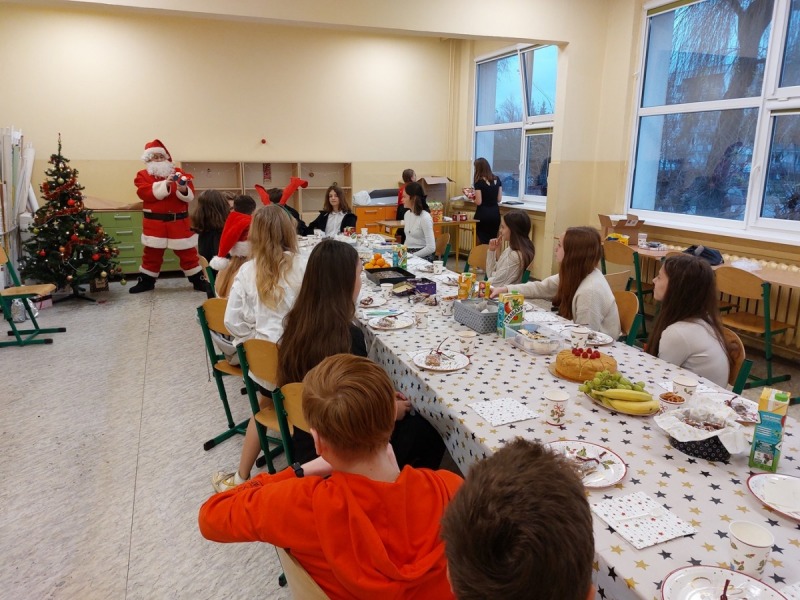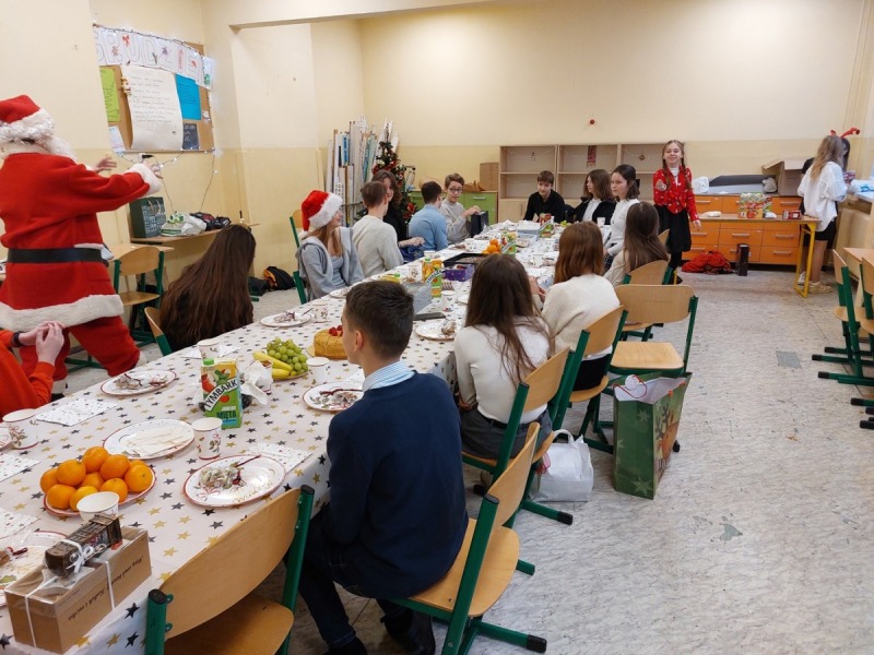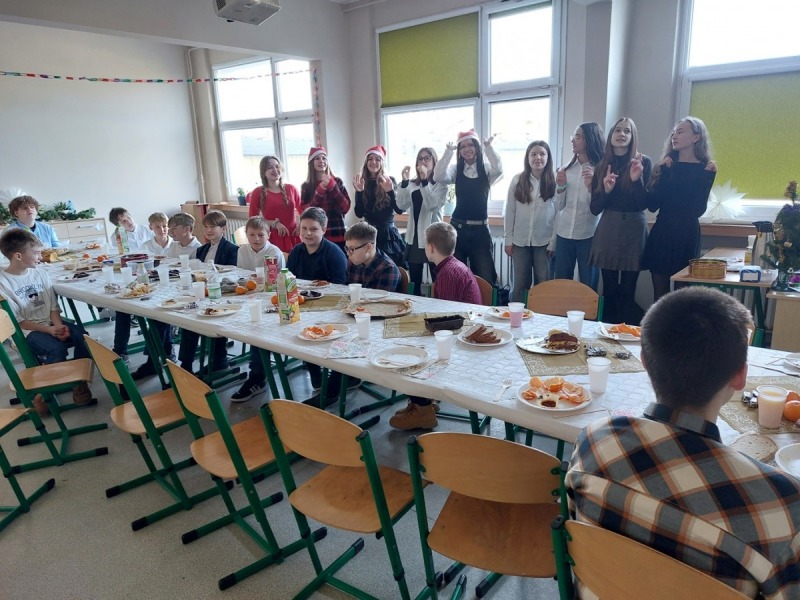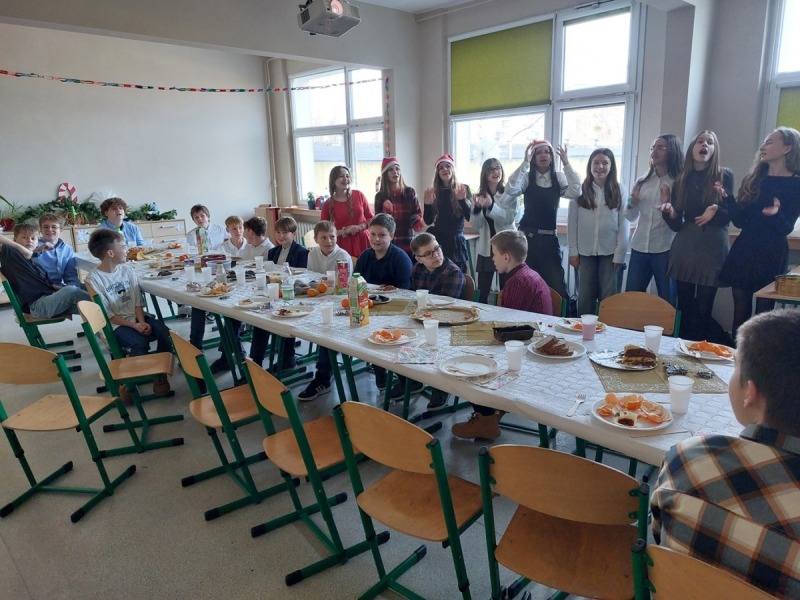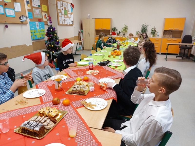 Niezwykle ciepłą tradycją Szóstki są spotkania świąteczne w klasach w ostatnim dniu zajęć w danym roku kalendarzowym. Nie inaczej było w tym roku. W przystrojonych choinkami i bożonarodzeniowymi drobiazgami salach pojawiły się uroczyście przybrane stoły z ciastami, mandarynkami, czasami barszczykiem... Była okazja do rozmów, śmiechu, składania sobie życzeń, wspólnego śpiewu i naturalnie prezentów świątecznych! Naładowani pozytywną energią rozeszliśmy się do domów świętować w gronie rodzinnym.