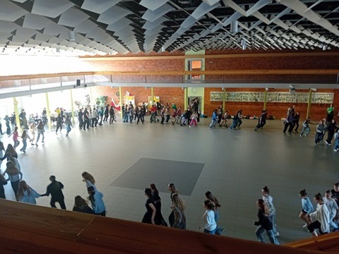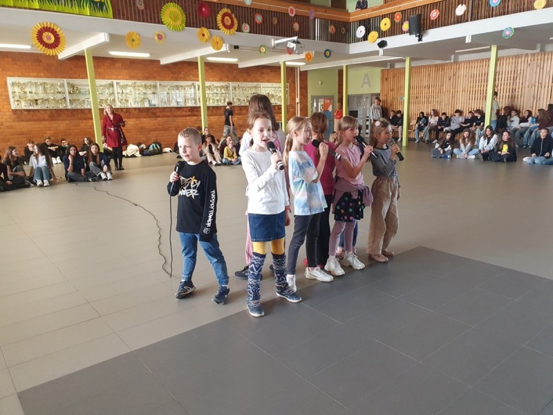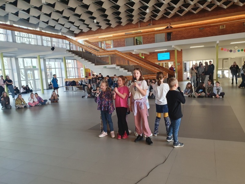 Za to 20 marca muzycznie powitaliśmy pierwszy dzień astronomicznej wiosny. Oczywiście nie zabrakło tanecznej Belgijki poprowadzonej przez uczennice klas 8e oraz 6d. Wszyscy obecni z entuzjazmem przyjęli wykonanie piosenki „Adrenalina”, która była niespodzianką przygotowaną przez uczniów klasy 2a oraz 3a. Nagłośnieniem zajął się uczeń klasy 8a.