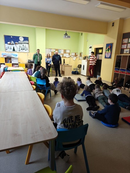 25 listopada naszą świetlicę odwiedzili wyjątkowi goście – motorniczowie, którzy poprowadzili ciekawą i pełną wrażeń lekcję dla dzieci. Dzieci były zachwycone spotkaniem, zadawały mnóstwo pytań, z ogromną radością przywitały naszych gości z okazji Dnia Motorniczego i przygotowały dla nich z tej okazji wielką kartkę z życzeniami, a od zaproszonych gości w podziękowaniu otrzymały pamiątkowe prezenty.