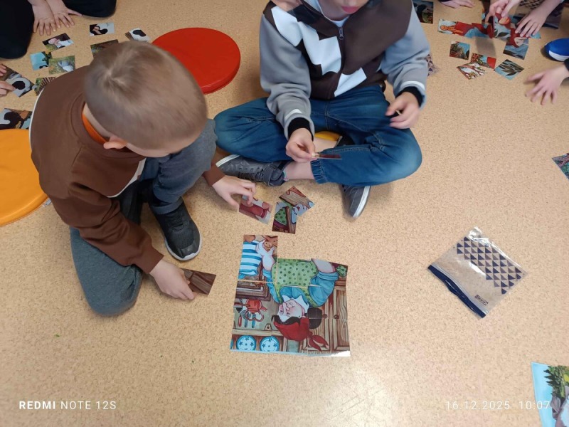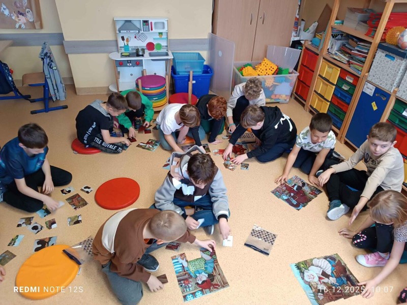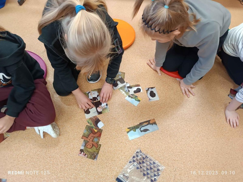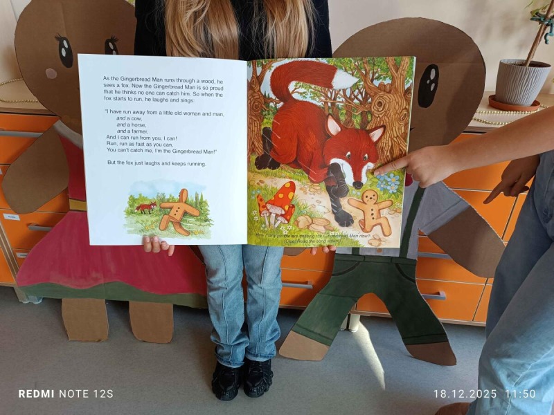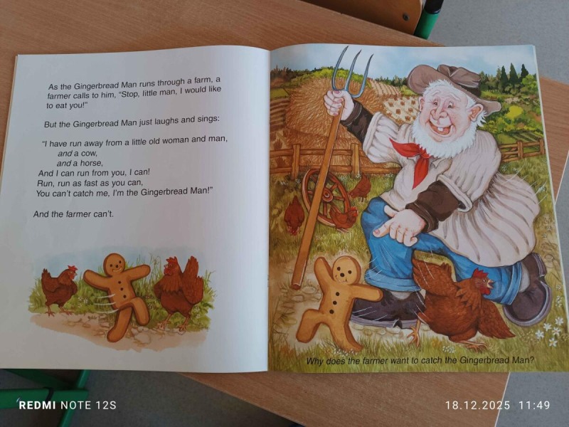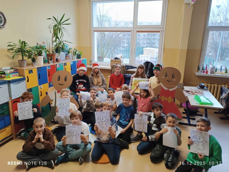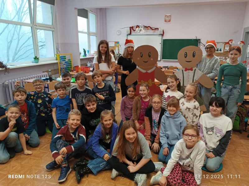 "Starsza pani upiekła piernikowego ludzika, lecz gdy otworzyła piekarnik, ludzik uciekł z kuchni. Wkrótce będą go gonić mieszkańcy wioski ..." Tak zaczyna się bajka, którą najmłodsi uczniowie z klas 2-3 mogli posłuchać 16, 17, 18 grudnia w ramach realizowanego projektu CHRISTMAS READING. Słuchający zmierzyli się z niełatwym zadaniem, gdyż historyjkę o piernikowym ludziku, starsi koledzy czytali po angielsku. Był też krótki quiz sprawdzający poznaną bajkę, ale dzieci poradziły sobie znakomicie. Serdecznie dziękujemy naszym lektorom z klasy 6c.