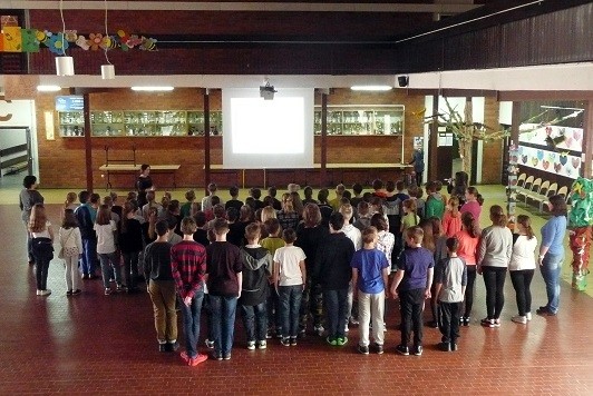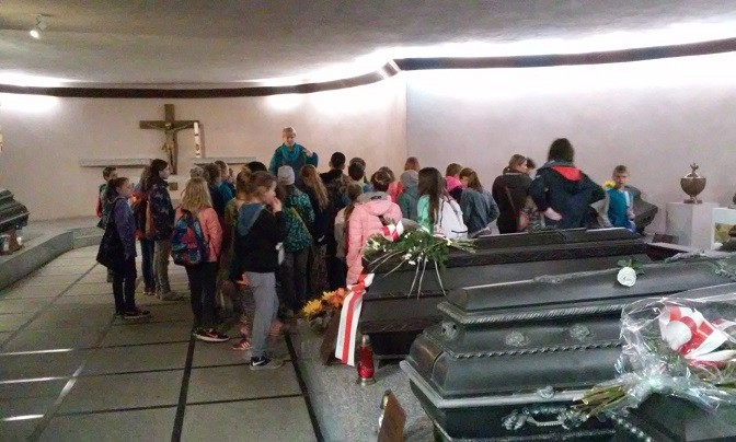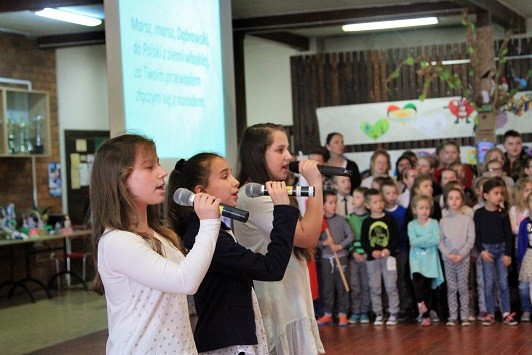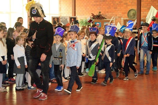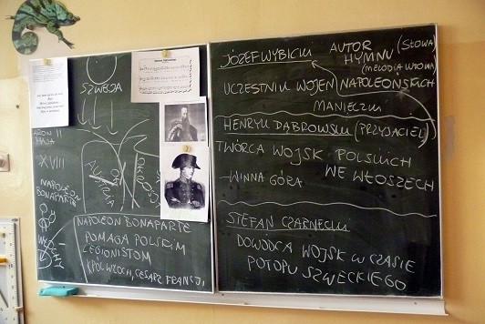 Przez 3 dni kwietnia (3-5) budynek Szóstki rozbrzmiewał dźwiękami Mazurka Dąbrowskiego - z okazji 90-tej rocznicy uchwalenia go hymnem narodowym Polski postanowiliśmy zadbać o większą świadomość młodych Polaków. W tym czasie dokładnie przypomnieliśmy sobie tekst hymnu - i to w obu wersjach: tej oficjalnej i tej oryginalnej (Pieśń Legionów Polskich we Włoszech). Pochyliliśmy się nad tekstem, rozmawialiśmy o historycznych postaciach w nim występującym, dowiedzieliśmy się też wiele o Józefie Wybickim - jego autorze. Analizowaliśmy historię powstania tej patriotycznej pieśni i stworzyliśmy mundury legionistów. Młodsze klasy bawiły się na I Olimpiadzie Wolności i Radości - w końcu wielkie wydarzenia sportowe sprzyjają temu, by wspólnie śpiewać hymn! Uczniowie ze starszych klas udali się na wycieczkę do Krypty Zasłużonych Wielkopolan - miejscu wiecznego spoczynku Józefa Wybickiego i miejscu przechowywania serca generała Dąbrowskiego. Ostatniego dnia spotkaliśmy się wszyscy na uroczystym apelu: odśpiewaliśmy hymn w pełnej wersji - pięknie brzmieliśmy! Był to też czas prezentacji naszych Legionistów oraz nagrodzenia uczniów, którzy najlepiej poradzili sobie z quizem nt. wiedzy o hymnie. Po apelu przyszedł czas na ostatnie wydarzenie - wspólne biało-czerwone zdjęcie całej społeczności Szóstki.