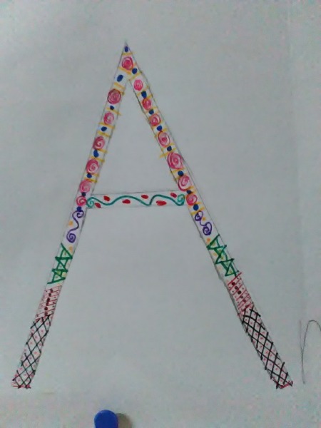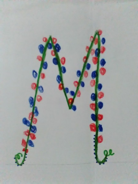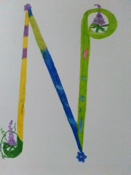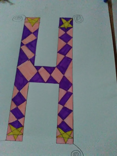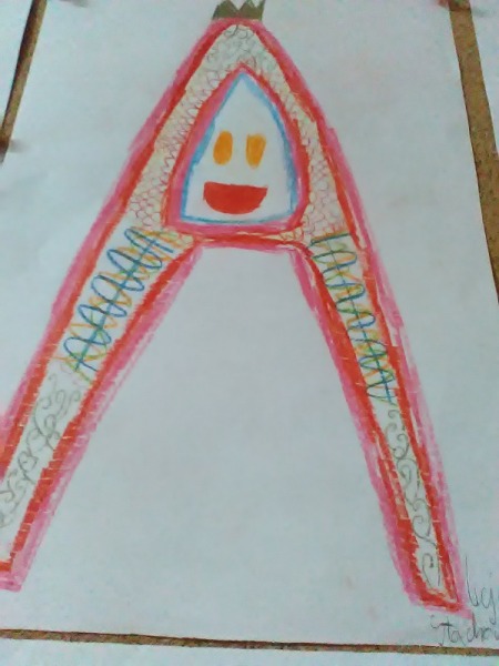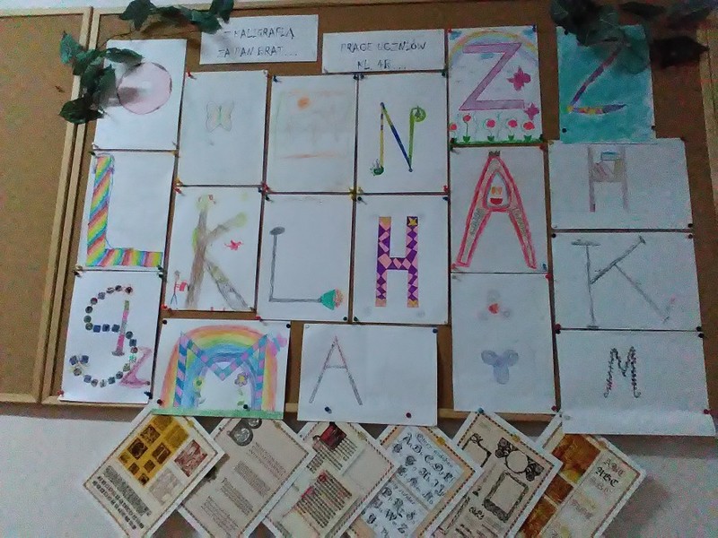 pisma, na lekcji języka polskiego uczniowie wykonali kolorowe inicjały, które